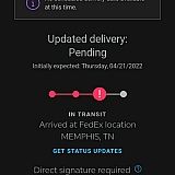 Second item shipped as Next Day. For the past 3 days, the status gets updated in the morning with: