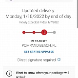 My package was supposed to be here dec 26. It's now jan 9. I live in Alabama. My package has flown from Georgia to Mississippi back to Georgia where it has been checked in 3 times since dec 28. Checked in 3 times. 3 times. Customer service is as useful as a used hubcap. This company should shut down. I could've driven to PA to pick it up myself if this crap was going to happen. I might as well cancel my order at this point bc it was gift for someone else. Ridiculous stupid useless company