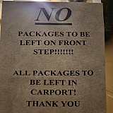 I just received a package from FedEx. It's been raining all day and is wet out. I have delivery instructions on the web site and a sign on the front door. My preferences were ignored and 2 packages were left on my soaked front steps. When I called to complain, the pilot couldn't understand what my issue was and it took 5 minutes to be connected with a representative. She couldn't seem to help either even after a "brief" 5 minute hold. When I tried the virtual assistant it also couldn't help, so I am now writing this review. The delivery person just didn't care and there doesn't seem to be any way to get my packages delivered correctly. So frustrating! I have included a picture of the sign on my front door. I think it's pretty clear where packages should go don't you?
