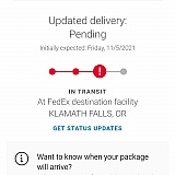 100% of the time a product ships through FedEx it is at least a week late. I watched a packed travel 700 miles in a 2 week period, were they walking? I have stopped ordering through companies that ship with FedEx.