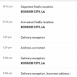 FedEx well it's now been 26hours on a truck after a 14 day delay after a 7-Day shipping agreement. I'm at work I don't have a tablet and it will be shut off today because I don't get to send the return product. My bank account will be charged extra for this inconvenience. You've cost me an exorbitant amount of money but I don't expect you to fix it. All It had to travel was four states, this wasn't a slow boat from China and yet that can get here on time at the agreed delivery time! It's a shame since Samsung uses FedEx and I don't get the option to choose.