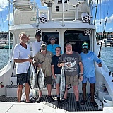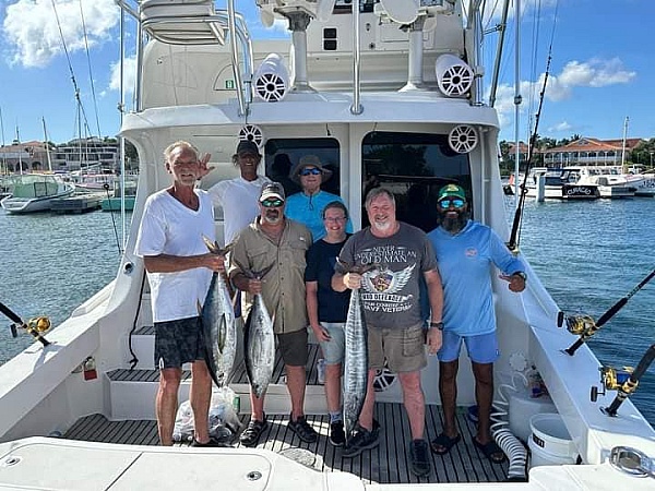 We Fished with Captain David El Hage out of Jan Thiel, Curacao For a 6 hour Charter with 4 of my friends. David should remember Arie for a while as Arie is almost 7 feet tall and from the Netherlands so they had quite a bit to talk about. Everyone hooked up at least and we did manage to bring in a few Tuna and a Wahoo, it was an outstanding trip and Crew. The highlight of our stay in Curacao.