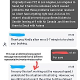 But in fact, the day before my trip I find that they've changed the content of that email to now say that the itinerary has changed and I need to contact them. Turns out the Seattle flight is somehow not confirmed. But don't worry, we'll set the issue to "urgent" and you'll definitely receive the confirmation within the next twenty four hours.