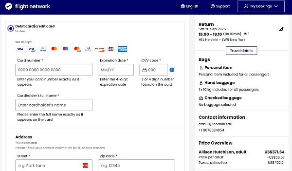 I tried several times to book this flight yesterday and each time I got a message that the payment didn't work. I tried several different cards and Paypal and nothing worked. Today I took the same exact steps and paid with Paypal the first time trying. Unfortunately the price increased. I would have chosen a different airline, but my daughter was able to book hers yesterday after several attempts. Not. Great way to start a trip