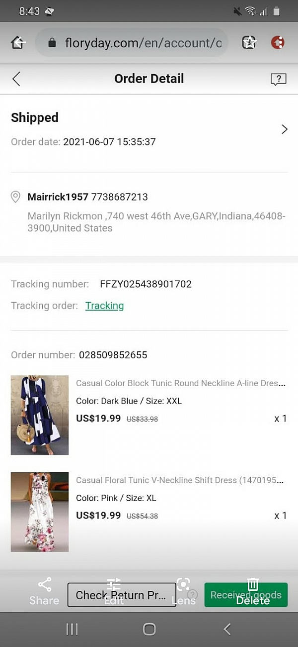 In July 2021 I order two dresses and never got them. They took the money out my account. They claim they had the wrong address and the dresses werer returned. But I never got my money back. Then they removed my account. But I made copies. All this time. I still have the order number. I reached out to them twice last year. The keep sendind new clothes items. But wont honor my money they took from me. Marilyn Rickmon