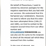 They are very unprofessional. I always use ferns n petals that provide such an amazing service but tried floweraura for the first time and had a terrible experience. The order was not delivered and no one called on the alternate no i had provided (even after calling them to make sure 2nd no was updated) and then they claim the order was delivered. Really? They are saying their delivery team confirmed that the order was delivered but i DID NOT RECEIVE THE ORDER. They just dont care after you pay them. I will never ever use their service again. So disappointed.