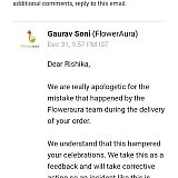 I oreder and pay the amount Rs 2149/- but this floweraura cheated me on 12th may me and my wife together planned to celebrate our birthday which is on same date but this stupid people not even delivered my order and no response from 2 days, also disconnected my phone calls, no reply for messeges and Email simply keepon cheating. Don't trust this seller such a big scam!