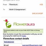 Pathetic Service. I had ordered for online delivery of flowers on 5th Aug. After floweraura confirmed the order( and charging an extra 150 Rs for delivery to the particular city) they have still not delivered the flowers. Everyday they keep calling the recipient and say they are sorry and will delivery it that day ( happened on Monday and Tuesday) Now i get an email saying -" Dear customer, We would like to inform you that your order hasn't deliver due to non electricity in our work shop last few days so please confirm us can we deliver this order to any other location till your next confirmation your order is on hold Regards Team FlowerAura ". Why will i want to send it to some-other location if they have issues with their stuff! HIGHLY NOT recommended and this is not the 1st time I have faced this issue