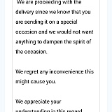 Furthermore, it has come to my attention that this incident is a result of a third-party vendor's actions, who not only failed to deliver the intended product but also engaged in promotional activities without my consent. I want to emphasize that I did not authorize any third party to send promotional links to my brother on my behalf, and I find this practice entirely unacceptable.