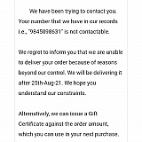 Worst service ever, if I could give zero stars to them. I ordered my rakhi on July 21 to Gurgaon, Haryana. The delivery address is just 1 km away from Huda city center metro station, still, my rakhi gift is undelivered. When I contacted them I got this response:
