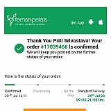 The process of ferns and petals is quick. The delivery was on time. Also the product quality was very good. Loved it.