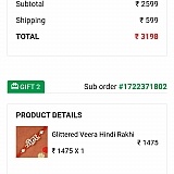 I have ordered a rakhi n choclate and the postal code mentioned was wrong I requested immediately to cancel the order they denied to do the same. They charged 5000 for 2 products and not giving cancellation option.