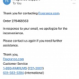 Right after I placed my first order with Fragrance I realize I had order the wrong item. After some research I was able to find a phone number, *******867. Called a total of 6 times. Each time I had to listen to their recording of them constantly repeat their website address, and wanting everyone to go that route. Very annoying. Finally, was told to hit a number to talk to a rep. I hit the number and another recording came on to say the system has an error 21 and to call back later. I would call back and same thing would happen. Today I also tried to call but this time it said to call during business hours. Well, it was 1:00 pm, in the middle of their business day and they still wouldn't answer the phone. As I was calling I also sent 3 emails, I wrote of the situation, and of course, no response until just a little while ago. The email said it was too late! If they would answer their phone or answer my emails on the day I first tried to contact them, this would never have happened. Then the email went on to tell me to go to their website (of course) to return the items once I reveive them. At that point I will need to pay another shipping charge. What kind of scam is this? It's frustrating when you ordered an item and find out there is no customer service. You're on your own.