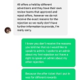 It appears that what happened here is that your offer's ticket was reviewed by the offerwall was was rejected. While we aren't told the exact reason for each rejection due to privacy concerns, most rejections take place if the competition of the offer is determined to have been incomplete. For example, if all the tasks weren't completed, or if VPN usage was used. As our support staff explained, we are unable to undo the rejection as it is final. We apologize that you feel that our admin Jax was dismissive - as Jax stated, there is no further escalation in regards to this, as the decision is final. We hope that since you have earned successfully plenty of times before that you will understand that our offers do credit, and that you can give us another shot.