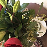 However, the bouquet of flowers did not look like the picture shown on the website. From You Flowers has a substitution stipulation that 'slight substitutions' may be made. OK, that's fine. However, my bouquet, instead of red roses with several large pink lilies and a number of smaller pinkish lilies, giving a bouquet with pizzazz, was red roses with small white lilies. Not close to how the website pic looked. See attached photos.