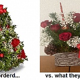 I'm showing the picture of what i ordered for my boss - Christmas Tree with roses (pd 80.00) - I just recieved a picture of what my boss recieved. I was humiliated! It looks like 25.00 carnations with a Lily and greenery. I contacted them and will keep you posted as to what they'll do for you if this happens to you.