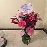 Flowers were received timely and the printed writing on the sash was a nice touch