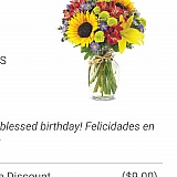 I was charged a total of $63.31 for a flower arrangement that specifically had sunflowers. They delivered a crappy low budget arrangement with ZERO sunflowers on 9/2. The employee's birthday surprise was ruined. Then they promised to send the correct arrangement on 9/7 after the holiday and nothing was delivered, then again on 9/8 and nothing was delivered... apologies and empty promises is what they give. Then finally it arrived today... still the same crappy arrangement now with 2 sunflowers in them. What a horrible company! Bunch of scammers in this company! Stay clear of them! Order directly from your local florist that's well known! I actually ordered from this company in error because I Googled my local florist and this company came up with that local florist's name in the link. Obviously this is done on purpose since they are so shady!