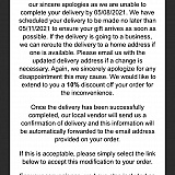 Ordered flowers for delivery on a date and in a zip code listed as available online. Placed my order and a couple hours later received notice that the requested date wasn't an option so would arrive the following day. That day was a Saturday so the building would be closed and unable to accept delivery.