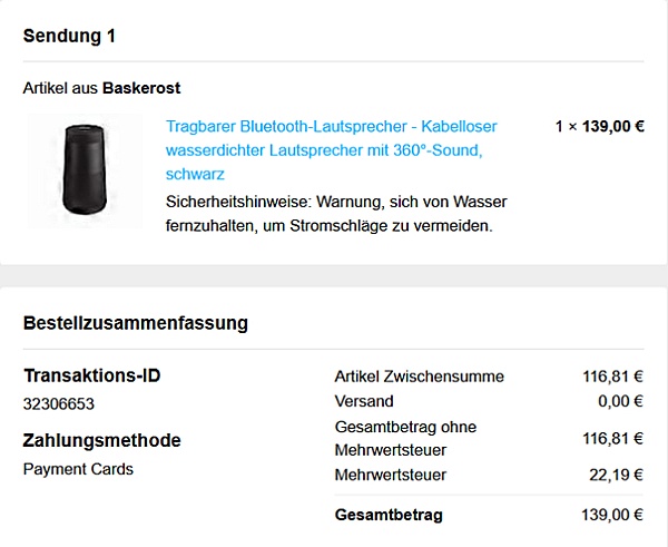 Im Mai 2025 habe ich bei fruugo.com eine „BOSE SOUNDLINK REVOLVE+" bestellt. Trotz mehrfacher Anfragen habe ich bis heute keine Rücksendemöglichkeit erhalten.