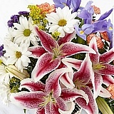 Lilies and red carnations. That's all. I paid for their highest upgrade to get the fullest arrangement. The worst Bouquet I have paid for. Could have got better at a gas station.