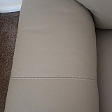 We purchased 3 pieces of furniture from the Missouri leather range in Aintree Liverpool and after a week one of the arm pads has failed and Furniture Village were informed immediately they sent a technician who they claim is independent but believe me they aren't anyway we received a report back today saying that there wasn't anything untoward wrong with the arm and there was nothing they were prepared to do! In other areas if you found a product was faulty after 14 days you could send it back! Full on view of the 2 seater sofa then 2 photos of the cushion pads on the arms 1 left & 1 Right and it is quite obvious that an arm pad should not look like this after little or no use!