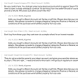 I paid for several games and now some got removed due to payment issues with steam. I paid fully and the seller used a stolen credit card to buy the code and then sell to me. After i got the code for a few days the original credit card desputed the charges and steam removed my game. I wad unable to get a refund.