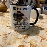 Just received the coffee mug I ordered for my wife. Seeing as we just got a new puppy Xmas I decided to buy her one of your dog themed coffee mugs. When she opened it she burst into tears. Happy tears of course. She just loves it. Thank you so much