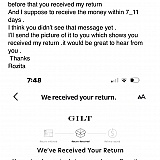 I will in the future no better than any purchases from the subpar retailer scraping the bottom of the barrel for a discount retailer well gilt is a low as you can get. Reminder with that you can expect no service no quality and little to no satisfaction but they will offer a bucket full of bs and headaches and plenty of work for you trying to do the contortions needed to get them to give you refund. Remember you get what you pay for. Gilt has a lot of reasons why there might be an issue but none for resolving it and as Jen the customer supervisor told me in no uncertain terms "you're on your own". And with a patronizing, condescending tone, ask if there was anything else she could assist me with. Lesson learned I know next time next use Gilt.con