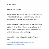 Our Returns Team is reviewing the email that you sent and will update you promptly.