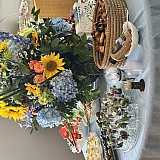 I bought flowers for my sisters funeral in August. We selected bright colorful, cheerful roses, carnations and geberga it was a lovely tribute to a lovely woman.