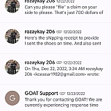 I purchased a pair of shoes as a Christmas present for a relative. The shoes were too small (my fault), so I tried to return and exchange them for the right size. With most companies, a simple exchange would be no big deal. But with GOAT it was like getting 3 root canals without novocain. This company goes out of its way to make sure a customer cannot get an exchange or refund and sets up obstacle after obstacle to ensure a return does not occur. In the end, and after much time spent working with customer service (I use that phrase loosely), I was able to return the shoes. But GOAT kept 50% of the purchase price, essentially charging a $30 restocking/return fee for a pair of shoes. I would avoid this company like the plague. They are a scam group.