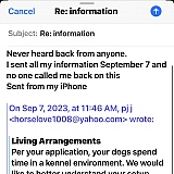 CONTACTED GOOD DOG- ALL THEY DID WAS CONTACT THE BREEDER AND BELIEVE HER, WITHOUT LOOKING AT THE COMMUNICATIONS! THEY WILL NOT HELP WITH A LEGITIMATE CONCERN BACKED UP BY WRITTEN FACTS.