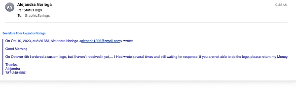 My first review for Graphic Spring was Misleading. I gave Graphic Springs a bad review because I didn't get the received and It took longer than they said. I orederd a custom Logo for $99. It took 14 days to arrive. Before I recieve the logo I was so upset for being too late. Joe contact me with the email and answered my questions very patiently. After I received the logo everything has changed. The logo was more than I expected and also it was unique not only that it costs only 99 dollars. It's a no brainer for everyone who wants custom unique logo.