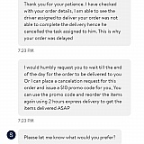 After making an order that was delayed by a day I was told the order would arrive between 6pm and 7pm. Come to find out at 6:40pm that not only has the delivery not been processed but they had no drivers to complete these deliveries, thus the order was delayed. Next time estimate was 11:55pm which was already extremely late, and after all the wait at 12:19am I call the assigned driver only for them to tell me the order was canceled because I was not answering to a phone number that was not even mine! I'm left without groceries, waiting on a refund from a system that takes days which means that I will have to go hungry for at least two weeks.