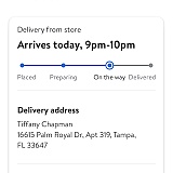 So I order over $200 with of groceries around 5:30 today! I checked it and my reservation time was 9/10pm! I have no idea why it stated my items were otw a few mins before 9pm! Mind you the Walmart is 3.1 miles away from my home! 9:16pm still saying out for delivery! 9:30, then 10 it's still saying the same thing! Mind you I had an order of popsicles, magnum ice cream bars as well as a tub of ice cream! At about 10 I received and email saying my delivery was delayed and my estimated wait delivery time was 2 more hours! It is currently 12:23 and it now again says delayed yet no email, no notification! Only saw it because I clicked on the app! No estimated time this go round! Atp I know my things are stolen by whatever authorities drive Walmart hired! Why does it take 4 plus hours to deliver groceries when again my home is 3.1 miles from the shopping center itself! It was BS from beginning and the fact that WALMART allows this is BEYOND ME! But let me walk in their establishments and steal a pack of gum! I would be arrested and trust passed FOREVER! Yet they can't tell when there contracted employees are thieves! Canceling my membership and start shopping at Publix like I usually do! Talk about unethical at its finest! We need to find a way to sue Walmart! I'm sure the driver doesn't mind. They get free groceries and a pass with no consequences!