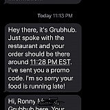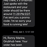 Was told driver attempted to call about delivery, when we were clearly waiting outside for the food at the so called "verified" time of call to make the delivery. Have a good relationship with restaurant that we ordered from being a regular there, called restaurant to verify that the food was never ordered. No refund. Grubhub's policy for no delivery is for 50% off the next order...? Why would I order again from a shady site that doesn't take care of their customers and refused to provide any kind of solid evidence and calls me and the restaurant a liar?