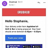 Contacted them 48 hrs go and complained about crappy service. Order was wrong, they didn't use coupon, food was cold and and hr late. No one emailed or contacted about the issues. I emailed them again and told them the problem they stated contact Applebee's. I order it from grub hub this is the second issue last time grub hub gave someone my food. Now I can see why there are not a lot of food restaurants on grub hub. Being a nurse in a hospital this was great but not anymore.