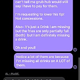 Answer: Nothing. By this inaction I would say to quit using this bad business. Go with UberEats or maybe try getting your own food.