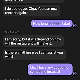 I order from Grubhub because of coupons. They don't honor coupons- you have to email 10 times. They don't understand emails. They waste your time by denying coupons.
