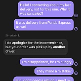 I ordered food from Panda Express 1 hour ago and they were canceled it bc "delivery issues". Their driver just mixed up and took the wrong orders. They just canceled it and made a refund. To which the customer service just apologized and did not provide even any discount or something in return. I waited for an hour and ended up being angry and hungry