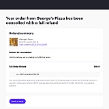 Placed an order from George's Pizza. Got an estimated delivery date by 8:30. Three delays later and the food is still not here. I called the restaurant and asked if I could come pick it up. They said sure. My partner went to get the food, while I "chatted" with the help on the app. They canceled the order AFTER I told them my parter was picking up the food! They also claim, on the app, the restaurant is now closed, which is a lie! Clifford, the "chat representative" then closed out the chat on me. 🤬 Don't use GrubHub. They aren't worth it.