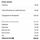 Delivered raw chicken to me in a bag dripping with spilled sauce. Wanted to give me a credit to my GH account at a FRACTION of what the order was. I asked for the chicken order to be comped, since it was raw and could've made us very sick, and the delivery fee waived since it was spilled in transit; I asked for this in the form of a refund, rather than a credit. They didn't budge and said this type of complaint isn't eligible for a refund. Closing my account today.