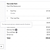 Attempted to order Thai for lunch, Spring Rolls, Ckn. Pad Thai and Thai Tea roughly $20.00. When ordered on this joke of a delivery service the total came to $35 and change, 75% of my order added again as fees and tips... they default to a 20% tip for the driver, I will decide that depending on how the service is thanks. $3.99 for Delivery Fee, money grab for Grubjoke, and then when you open "Taxes and Fees" there is another delivery fee added on in addition to the tax of another $3 and some change. Even without a tip it was still $29... I opted to just go grab it and put a note on my door at work, took 7 mins and saved me $15.00. Keep it up Grubjoke and you will be gone before you know it, I sure hope anyway.