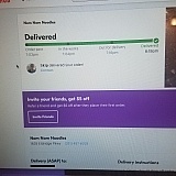 I love Nom Nom Noodles and will continue to order here in the future but I will Never use Grubhub again. This was my first time using Grubhub. Food was ordered at 7:03 PM, the website said the food was out for delivery at 7:16PM and we did not receive our order until 8:19 PM. The restaurant said the driver was extremely late picking up. We had a cash tip waiting for our driver but did not give it to him considering how late he was. He also didn't say a word when he dropped off our food. No apology, Nothing. Terrible service on Grubhub's (and particularly this driver's) behalf.