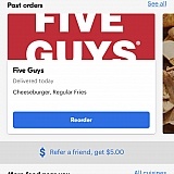Don't trust the ratings in the app for the restaurants. It doesn't give the customers an option to make their own review it just creates its own statical rating based of the numbers from GrubHub. For example, I ordered my food at 11:16am (a cheeseburger and fries from Five Guys) I was quoted an estimated delivery time of 12:00 to 12:10. As time went on, I checked the status of my order and noticed my ETA was increasingly getting longer and longer. I did not receive my order until 1:15pm. GrubHub will mark my order as arrived on time since they were constantly changing my ETA. Changing the ETA is one thing, but increasing it by an hour and not receiving for two hours after ordering and then not even giving the customer the chance to review is just manipulative.