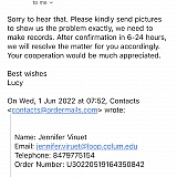 Answer: Hi Billie. Sorry for the issue. Please provide your order number, we will check it. Email: [email protected]