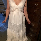 Dress was massive & poorly made. It's clear the models dress was not the same quality of what I got in the mail. I waited weeks just for a dress that didn't fit in any area of my body. Very disappointed. Will order from Hebos again.