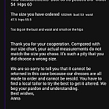 I contacted them right away to which they told me must've happened during shipping which logically makes no sense as it was on the inside of the sleeve and then advised me to get it dry cleaned. After also stating I wanted to return it for being too big they asked me for my measurements and said because my bust was too small and hips and waist were too big I couldn't return it even though when I put it on it was not infact too small but too big. They refuse to let me return it for a refund and suggested I go get it tailored since it was my mistake for it not being a custom size to perfectly fit my body even though this was the closet fit on the standardized chart and would've had to pay extra for a customized dress (They also do NOT do returns on custom orders either per their policy). Here are pictures of the blood stain on the sleeve and their "customer service". If you're getting something you better their be the exact measurements or custom order the dress because they will blame everything on you or the shipper and will not genuinely help you. I am now out $150 super unfortunate!