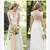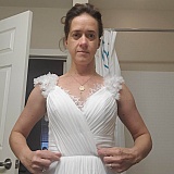 I was looking for a simple, pretty wedding dress. Nothing flashy. I spotted this dress on Hebeos and absolutely adored it. It looks soft, comfortable, and flowy. I should have known better than to think I could get a nice dress for that price. The dress I purchased hardly resembles the photos at all and will NOT be in my wedding. What looks like a soft and flowy bodice is basically made of cardboard and since I'm not well-endowed, it is floating around my body like a big empty corset. You can see in the pictures that I posted how it gaps and anyone could look into my dress if they were standing next to me.